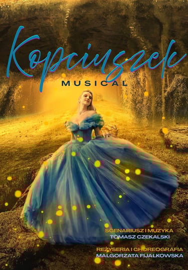 „Kopciuszek” to spektakl dla dzieci w wieku od 3 do 10 lat. Jest to dowolna adaptacja bajki braci Grimm. Historia sierotki, którą los zmusił do zamieszkania z macochą i dwiema jej córkami. Spektakl został zrealizowany w formie musicalu. Piosenki i taniec wypełniają cały spektakl i mimo smutnej historii zawiera wiele komicznych i radosnych momentów. Spektakl jest napisany humorystycznym wierszem i oprawiony wspaniałą muzyką. Ten musical zdobędzie z pewnością serca młodszych i starszych widzów. Spektakl kostiumowy.